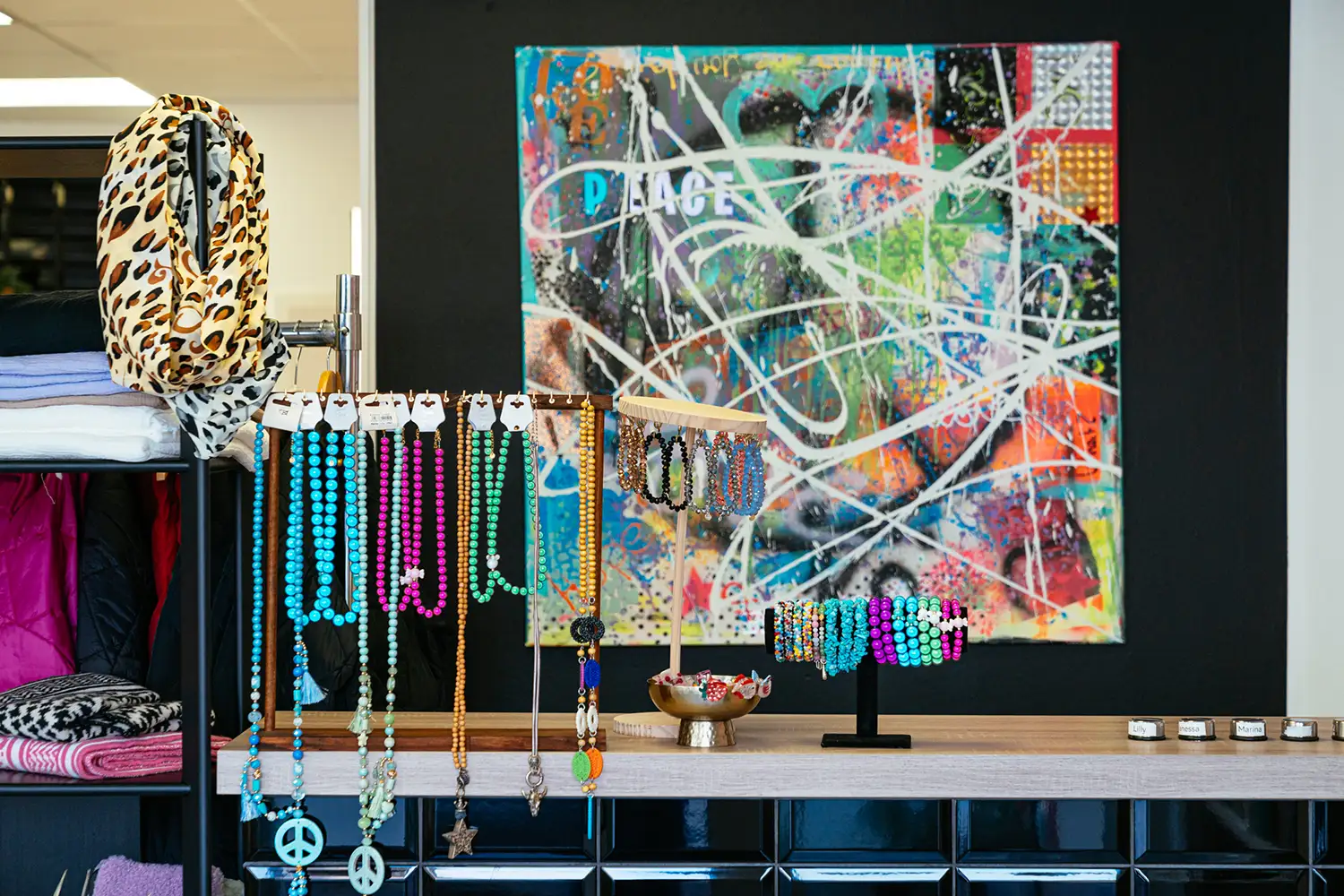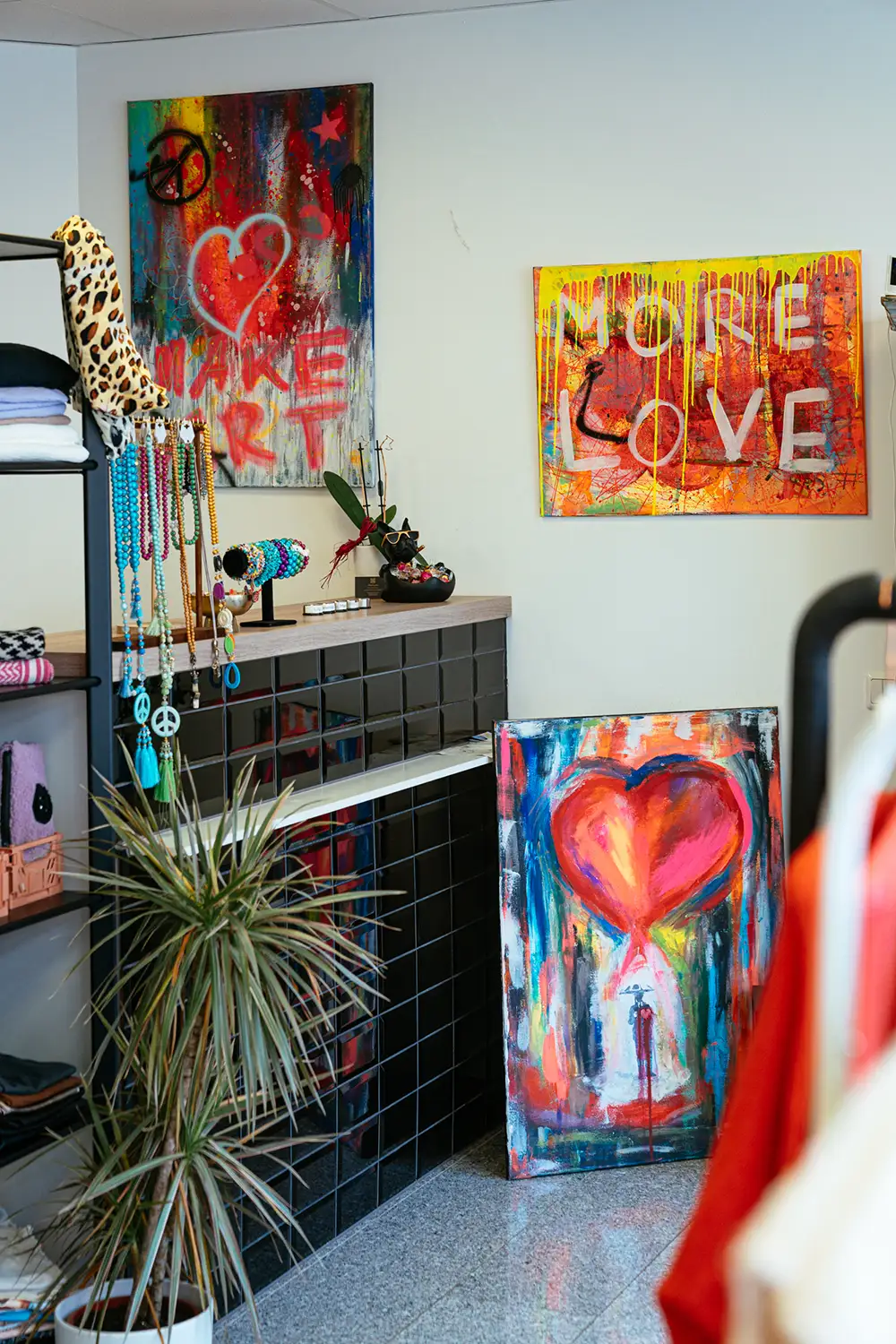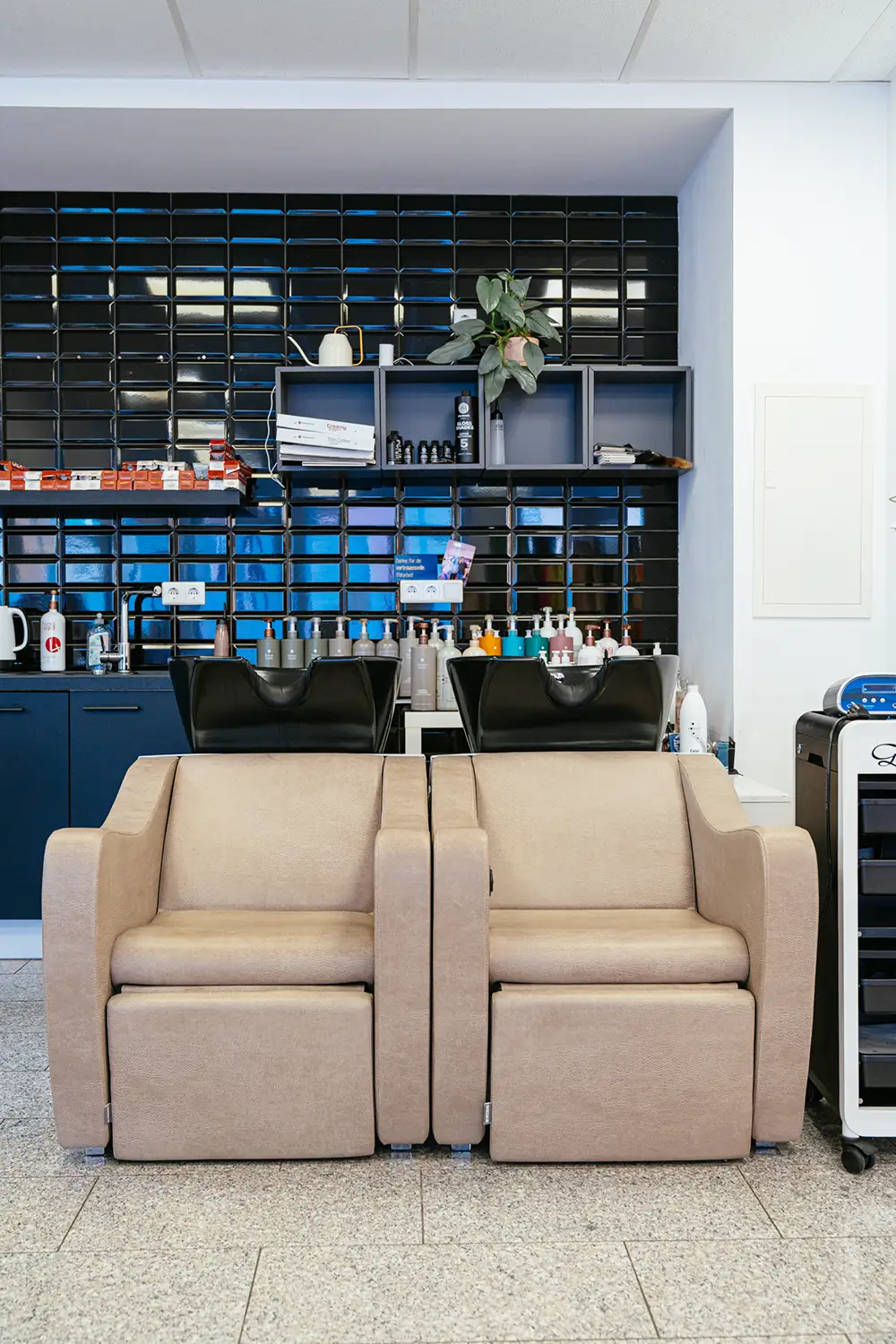 Marina ist brennt für ihren Job und das sollte sich im Brand wiederspiegeln. Sie liebt moderne Kunst und gestaltet sie auch selbst. Das sieht man auchvor Ort im Salon – Ihre Werke sind überall präsent.